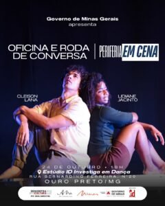 As oficinas de dança contemporânea, serão conduzidas de forma prática e acessível, partindo das vivências pessoais dos artistas que têm 20 anos de experiência profissional na modalidade. Já as rodas de conversa abordarão temas como acesso à cultura, formação artística fora dos grandes centros e a dança como instrumento de resistência e transformação social. O projeto Periferia em Cena foi aprovado no edital nº 09/2024 – Circula Minas do Fundo Estadual de Cultura de Minas Gerais.