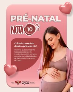 A Prefeitura de Viçosa lançou, em janeiro, o projeto Pré-Natal Nota 10, que consiste no monitoramento de todas as gestantes do município desde a primeira consulta na UBS (Unidade Básica de Saúde) da comunidade até o momento do parto. O objetivo é garantir que todos os exames de pré-natal, incluindo as ultrassonografias, sejam realizados rigorosamente dentro dos prazos.