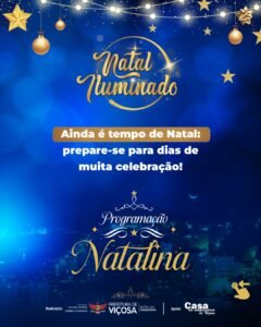 Viçosa vai entrar no clima do Natal com uma programação cultural especial entre os dias 20 e 23 de dezembro, na Praça Silviano Brandão. A agenda reúne atrações musicais, apresentações infantis, circo e um cortejo natalino, com atividades gratuitas e abertas ao público.